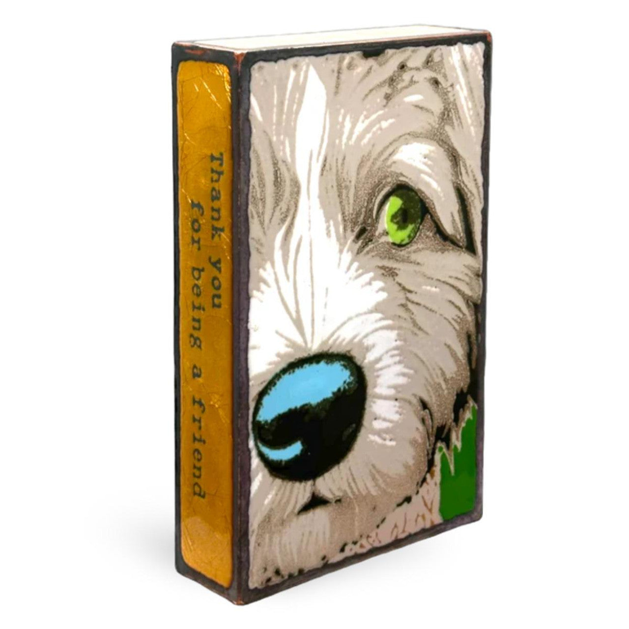 Quote begins on left side and finishes on right- author noted on top. Each Spiritile is made from copper, glass and wood. They can hang on a wall or stand alone, and will never fade or tarnish. Play video in additional photos to see how to hang the Spiritiles!