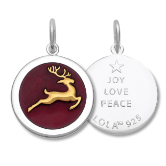 LOLA Reindeer pendant featuring beautiful color and the inscription “Joy Love Peace” on the back.