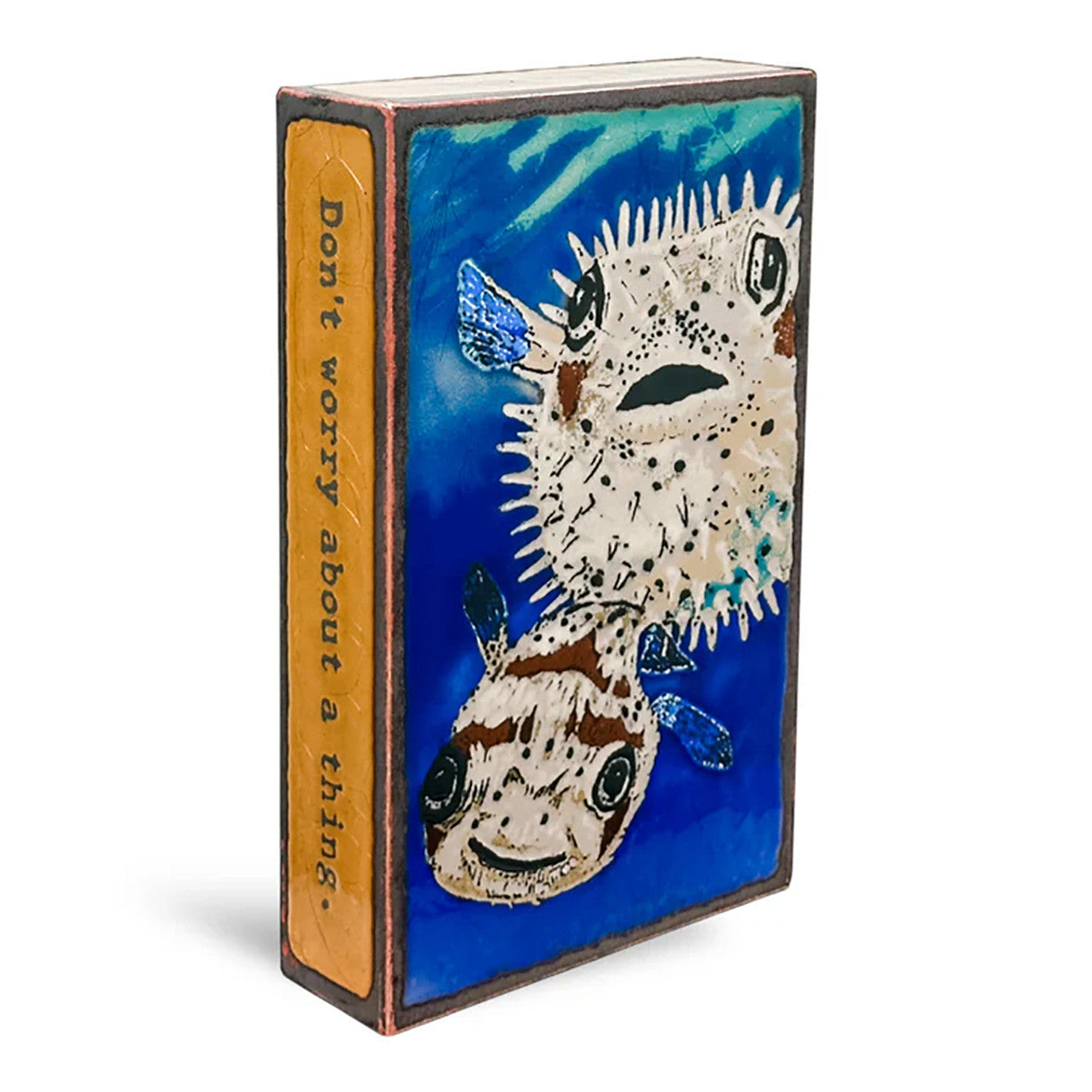Quote begins on left side and finishes on right- author noted on top. Each Spiritile is made from copper, glass and wood. They can hang on a wall or stand alone, and will never fade or tarnish.