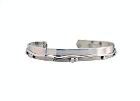 Sterling Silver Cuff with Waved Line & Flattened Nuggets