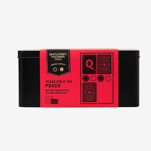 Bring the challenge of a great poker game with you wherever you go. This set includes a deck of waterproof playing cards, 120 stackable metal bottle cap chips in three colors, a waterproof storage tin, and game instructions.